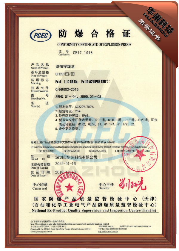 BHD51防爆接线盒(防爆合格证)(点击查看大图)